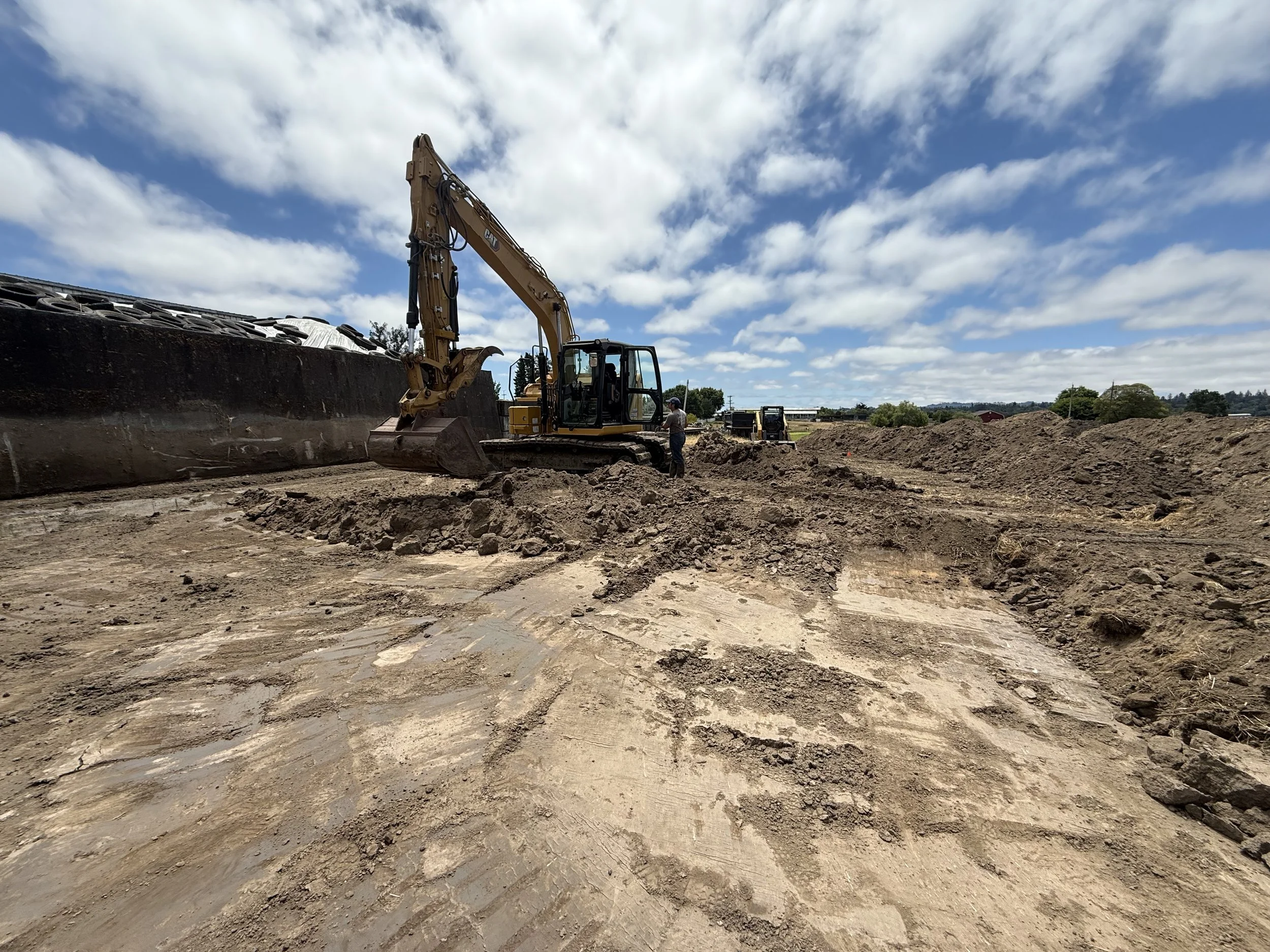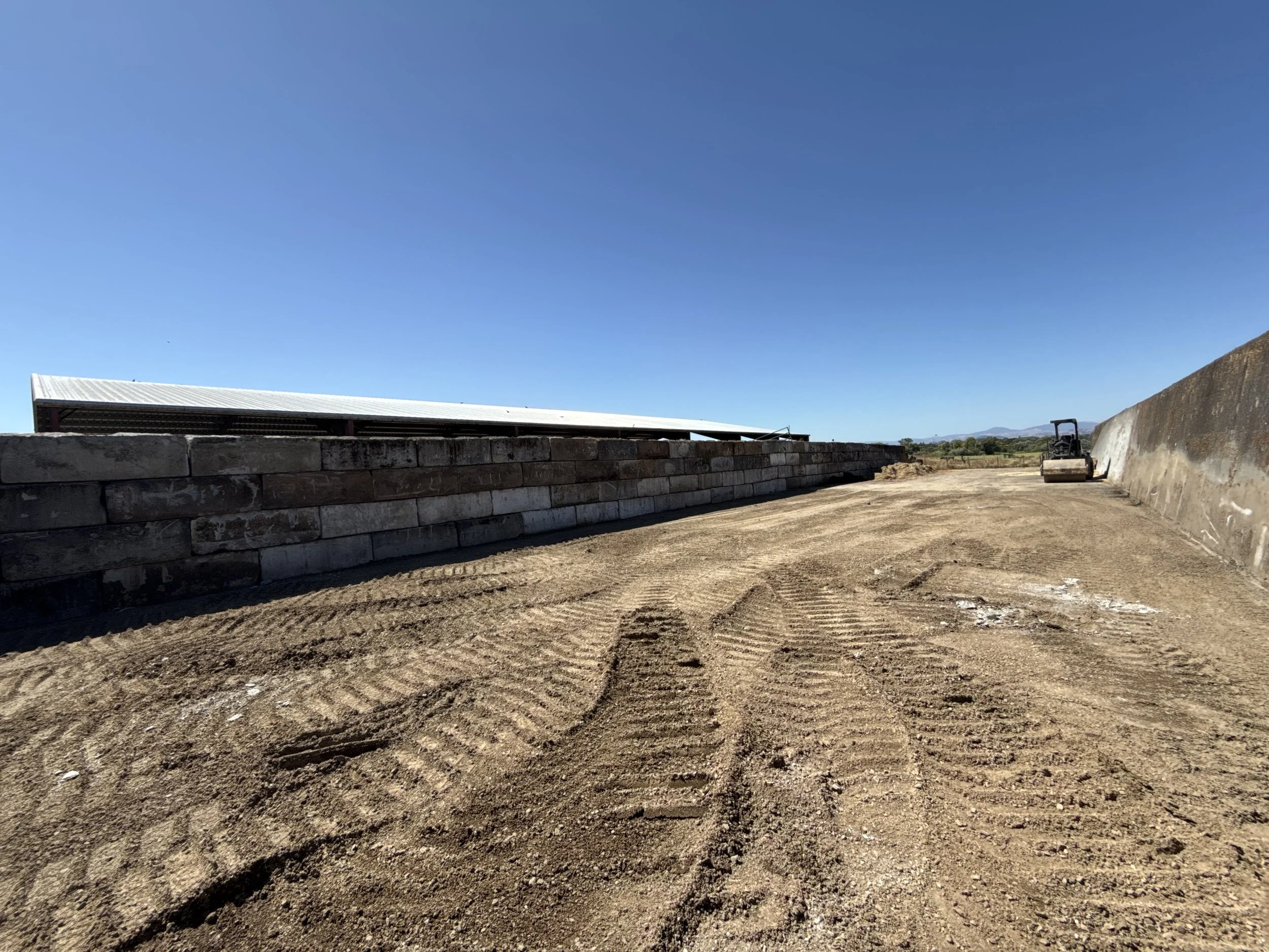 The customer needed their silage pit extended. This job involved cleaning up the area, extending the retaining wall, and bringing in approximately 2 feet of Class 2 base rock. The base was packed in layers, brought to grade, and prepared for asphalt.